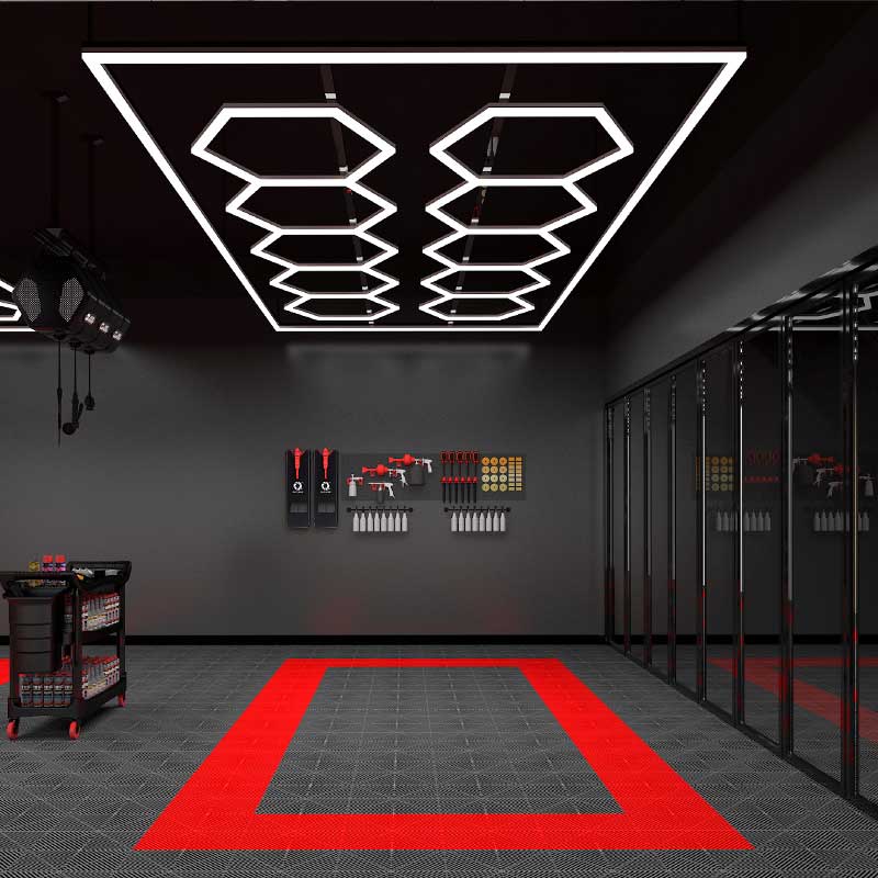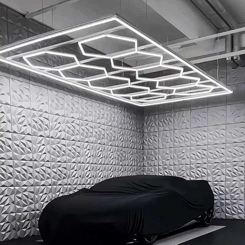 Mazmo Lux’s 10-Hexagon LED Lighting System with Border is a standout solution for garage ceiling installations—delivering high-lumen brightness and exceptional durability. With a robust protection rating, these LED fixtures are built to perform in demanding environments, transforming garages into brilliantly lit, functional spaces.