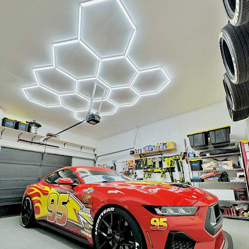 Mazmo Lux’s 11-Hexagon Grid LED Lighting System is built with safety, durability, and ease of maintenance at its core. Designed with rounded, scratch-resistant edges and a dust-defying structure, it reduces debris buildup—minimising cleaning and helping maintain a pristine garage environment. Constructed from premium corrosion-resistant materials, these garage LED fixtures are engineered to withstand humidity, rust, and oxidation, ensuring long-term, worry-free performance.